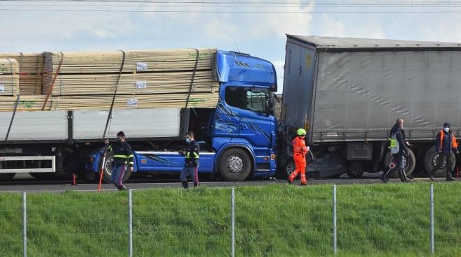 Maxi-scontro tra 8 tir in A1 tra Parma e Fidenza.
