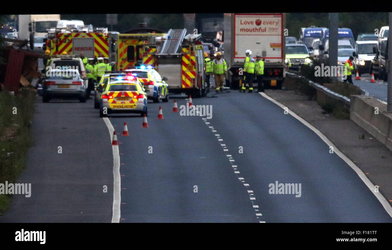 M27 Hampshire eastbound severe accident from J9 for A27 Segensworth Link Road Segensworth to J10 for A32 Wickham Road. Three lanes were closed following the accident with congestion as far back as the M27. An accident involving an overturned vehicle created heavy traffic on the A27 Eastbound.