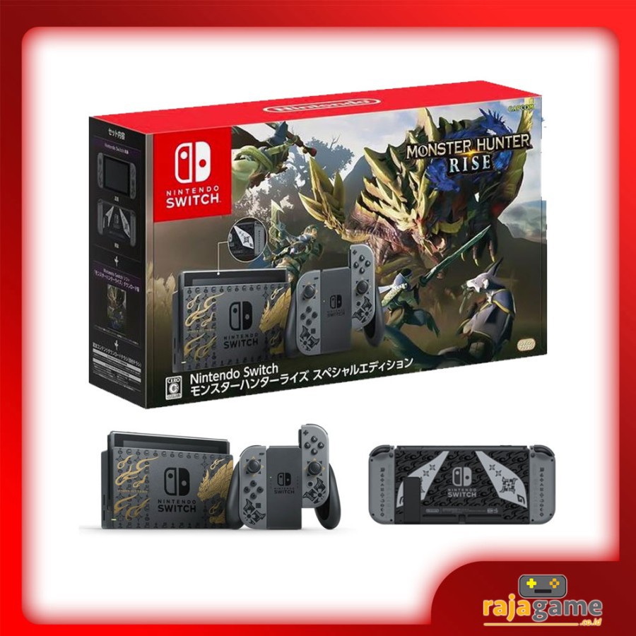 The Nintendo Switch MONSTER HUNTER RISE Edition features an image of Magnamalo the games flagship monster on the dock along with other evocative MONSTER HUNTER RISE-themed designs that adorn the console and both Joy-Con controllers. This monstrously large bundle contains a variety of fun add-on content. NINTENDO SWITCH V2 MONSTER HUNTER RISE SPECIAL EDITION di Tokopedia Promo Pengguna Baru Cicilan 0 Kurir Instan.