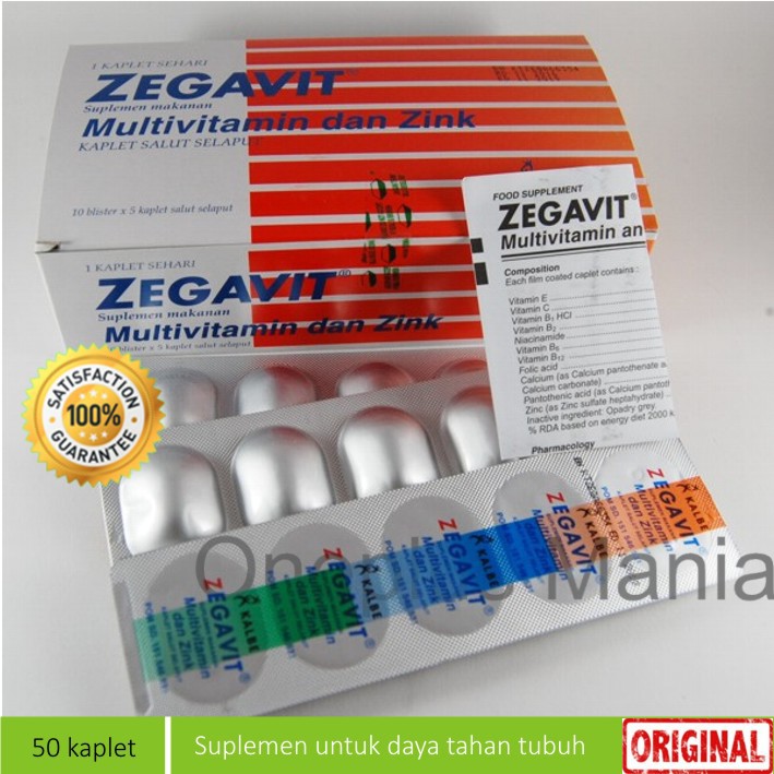 Suplemen multivitamin mengandung berbagai vitamin dan mineral yang penting untuk pertumbuhan dan perkembangan seperti yang terkandung dalam manfaat zegavit. ZEGAVIT multivitamin dan zink isi 50 kaplet 500mgRp275000. ZEGAVIT is a supplemental multivitamin mixture with minerals.